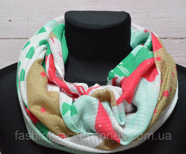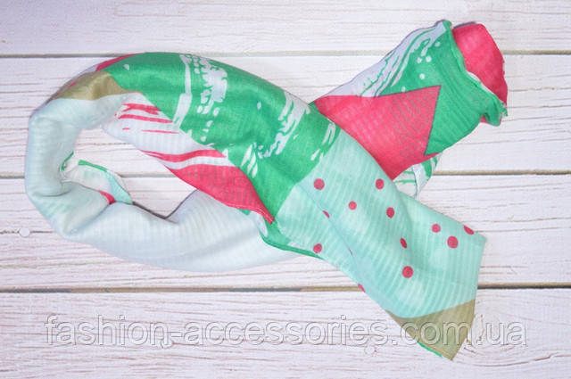 Шарф снуд жіночий легкий з бавовни з візерунком і принтом абстракція колір зелений 180*45