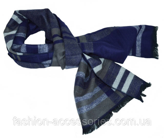 Стильний шарф кашеміровий чоловічий модний в смужку універсальний BRO синьо-сірого кольору