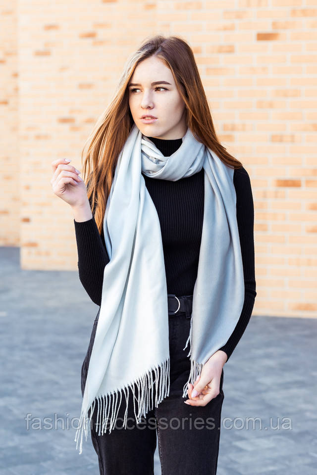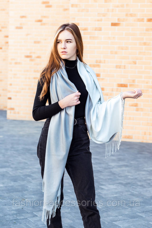 Палантин з кашеміру однотонний світло-сірий