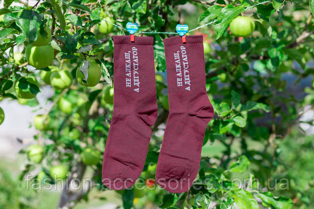 Бордові котонові шкарпетки 35-41 ORIGINAL з написом НЕ АЛКАШ, А ДЕГУСТАТОР