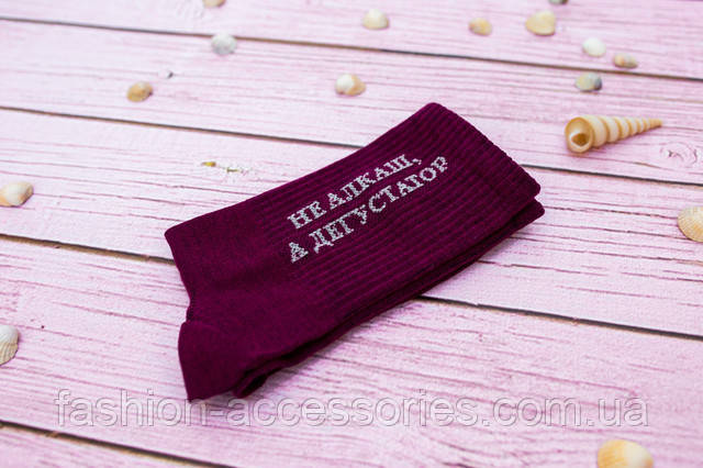 Шкарпетки з написом "Не алкаш, а дегустатор"