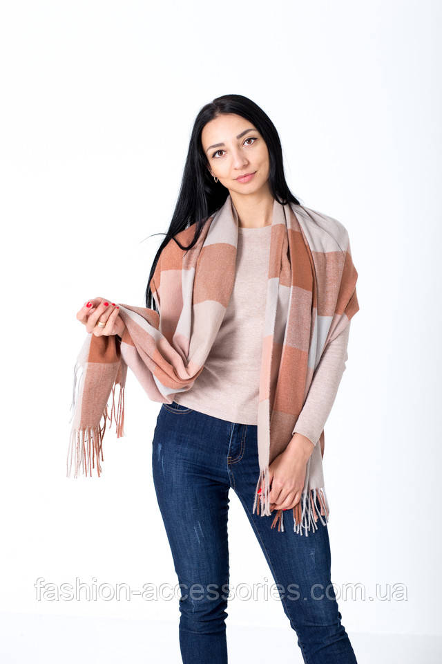 Палантин жіночий кашеміровий у велику клітку красивий LEONORA зимовий колір пісочний