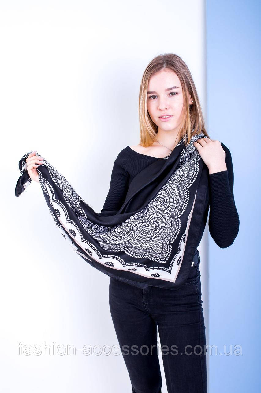 Штапельный жіночий хустку красивий модний нашийний, головний з візерунком темно-синього кольору