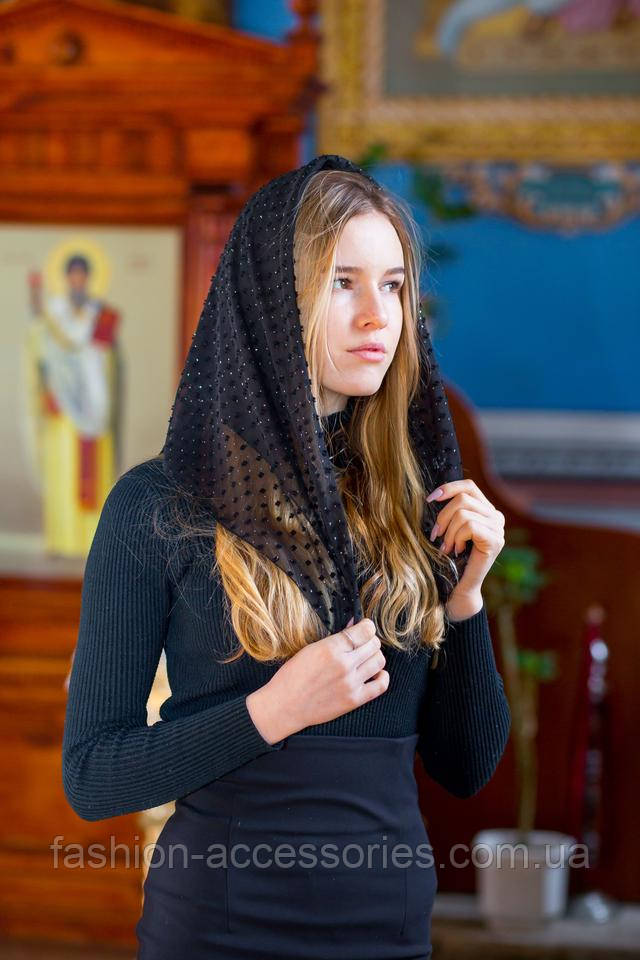 Чорний жіночий шифоновий хустку на голову однотонний ритуальний легкий в цятку Bead