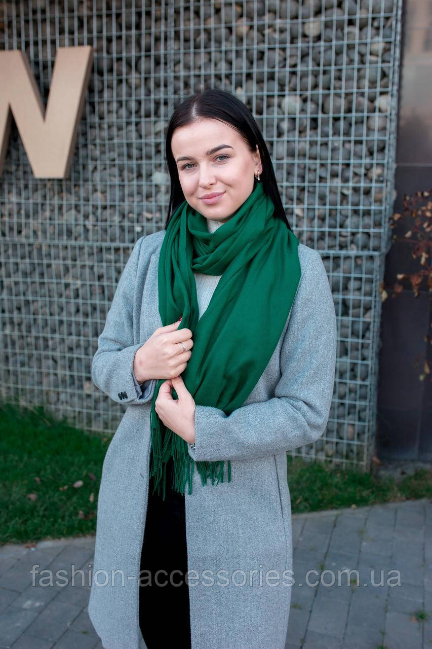 Палантин однотонний жіночий із бахромою кашеміровий якісний гарний стильний зеленого кольору