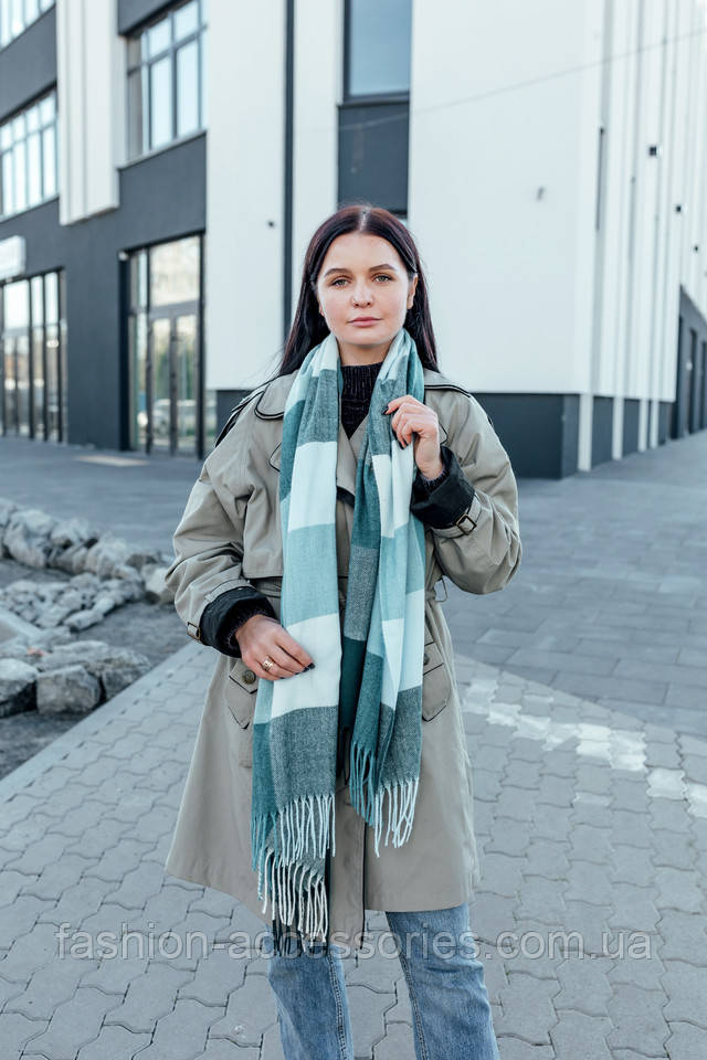 Жіночий палантин кашеміровий на плечі шаль стильний красивий теплий в клітку в зелених відтінках